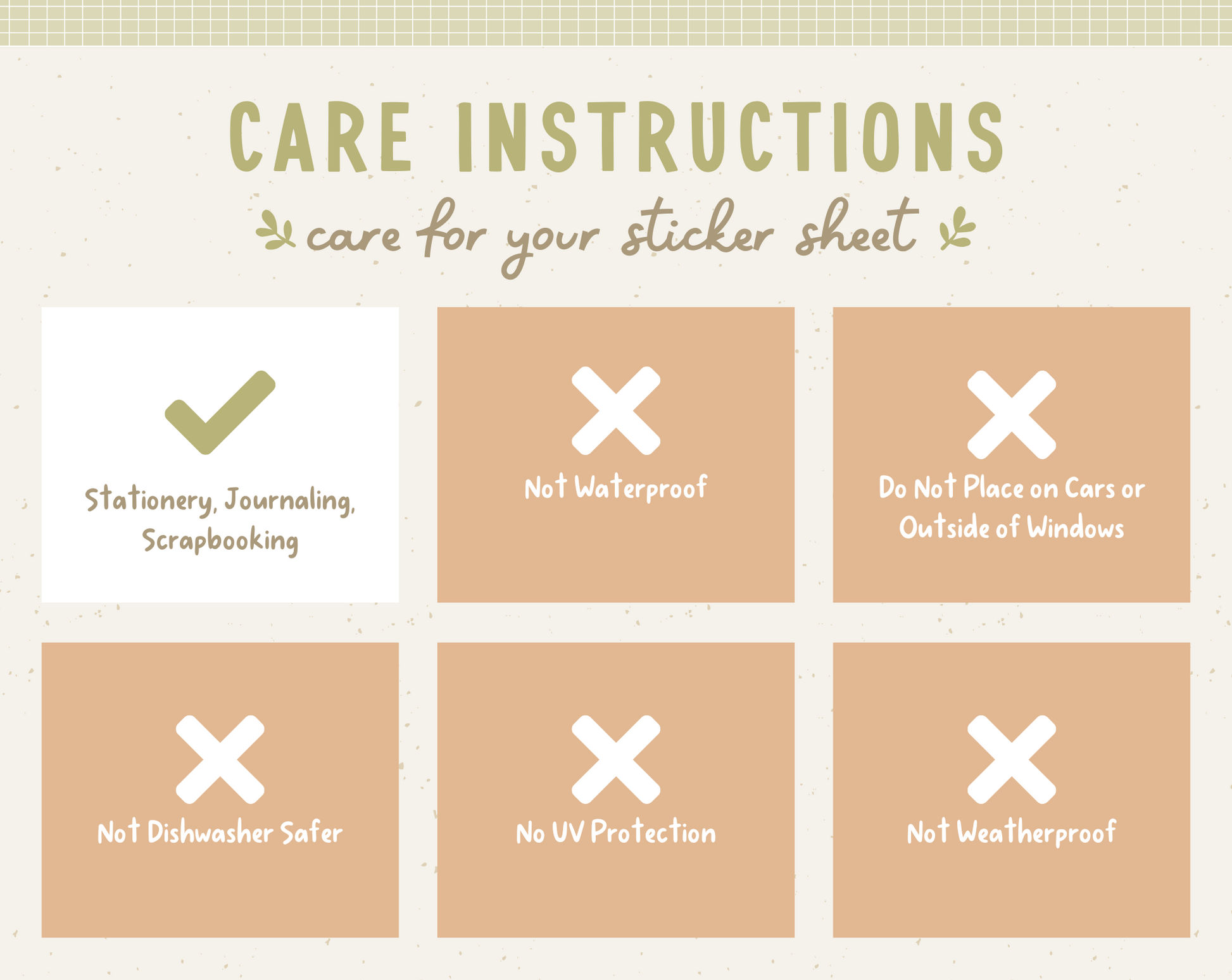 - Sticker sheet is approximately 4.50 inches (W) by 6.00 inches (H).