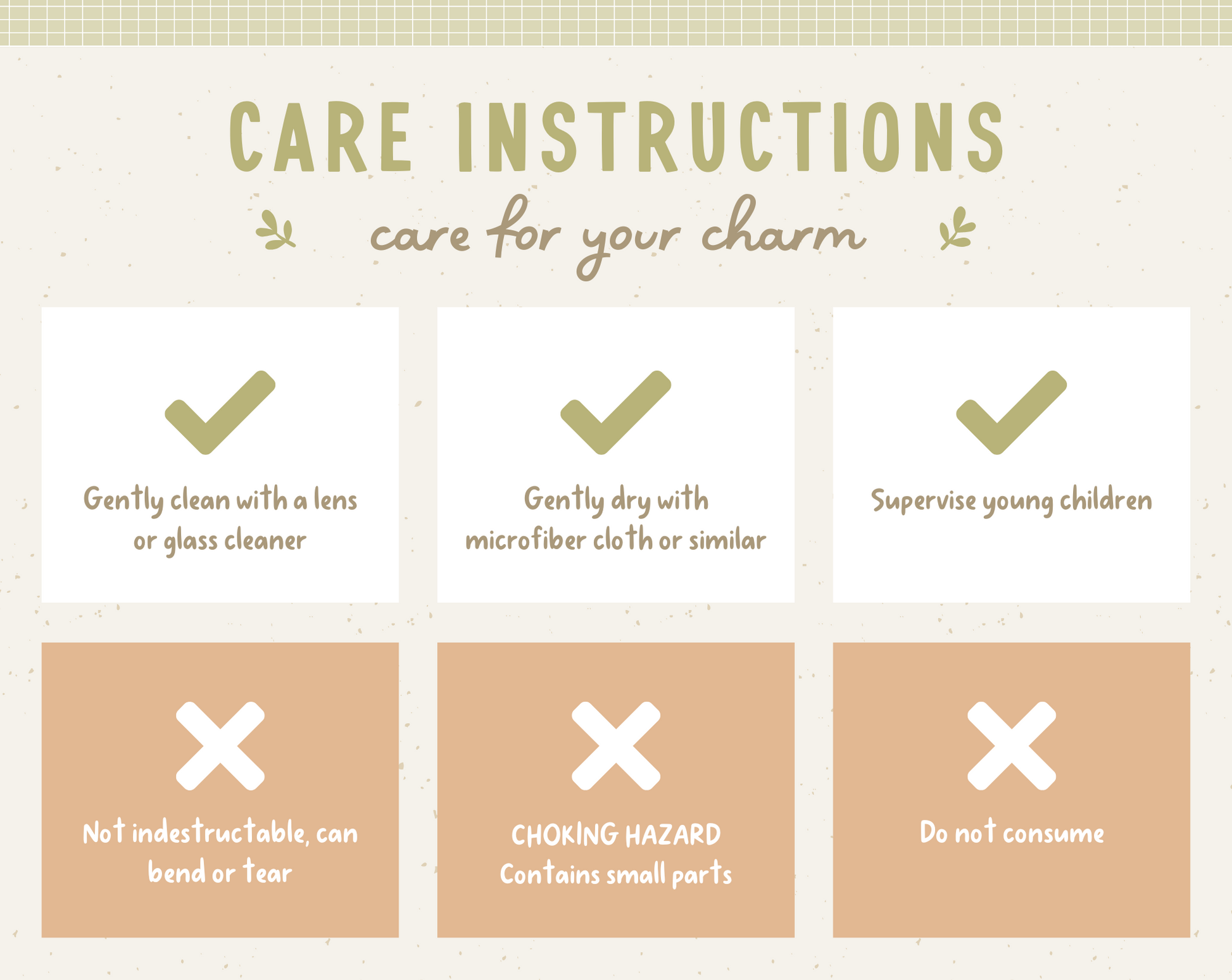 - While built to last, charms are not indestructible.