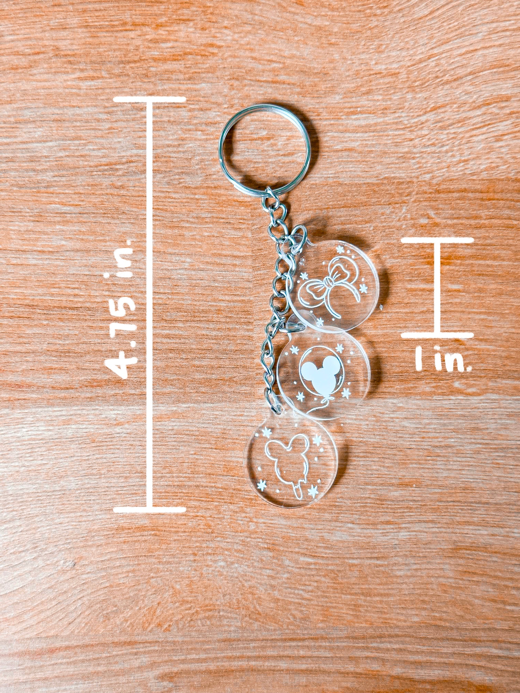 - Keychain is approximately 4.75" in length and each charm is 1.00" wide.