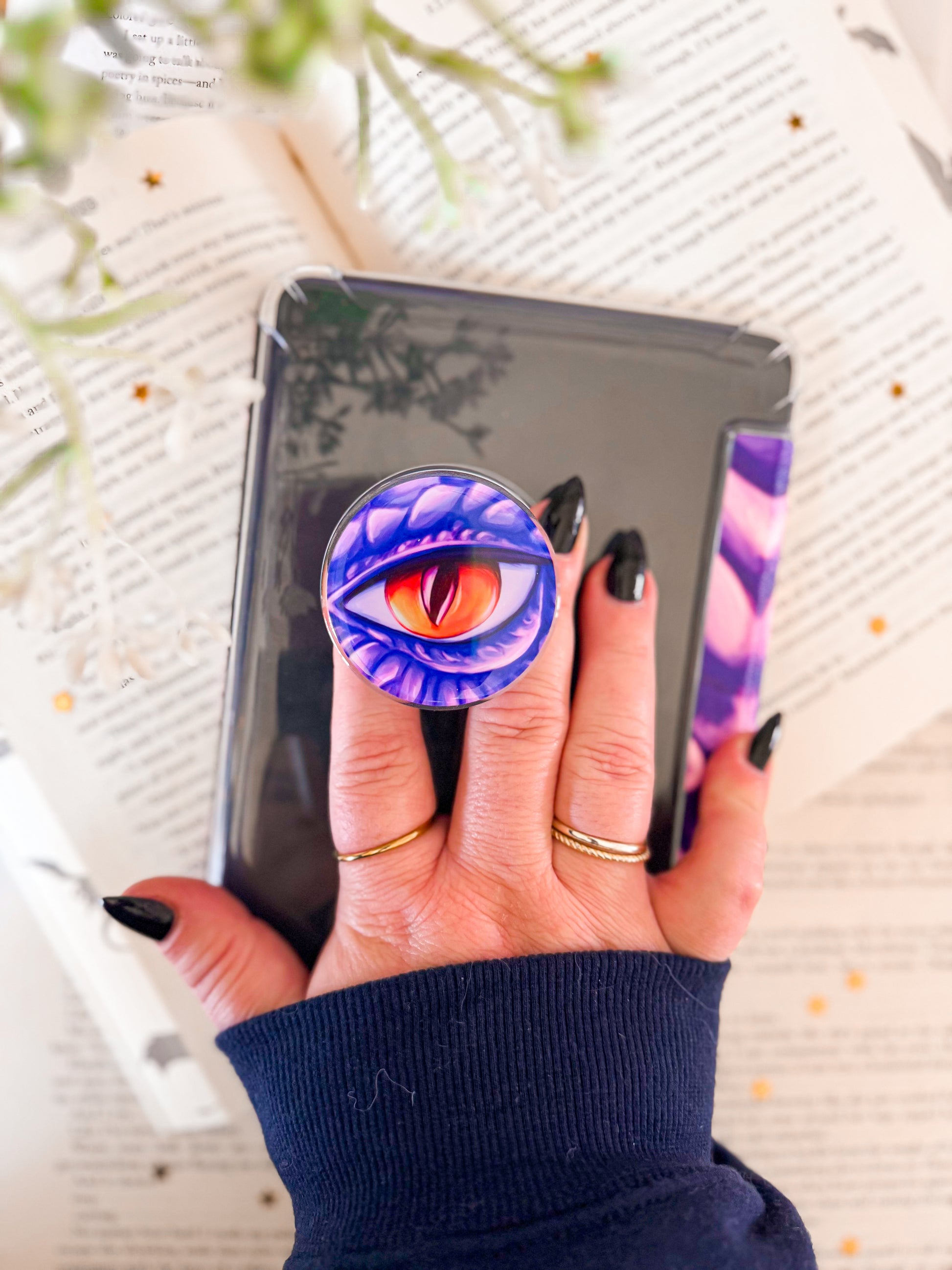 Add some flair to your phone or kindle and read/scroll in comfort with our scaled skies dragon grip.