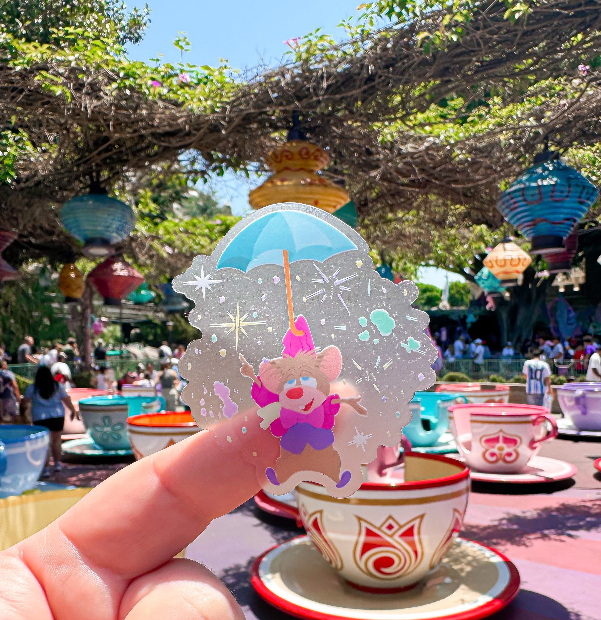 Teacup Mouse transparent vinyl sticker perfect for kindles, tablets, phone cases, laptops, skateboards, notebooks, etc. Every sticker is protected with a thick, durable vinyl that shields it from water damage and scratches.
